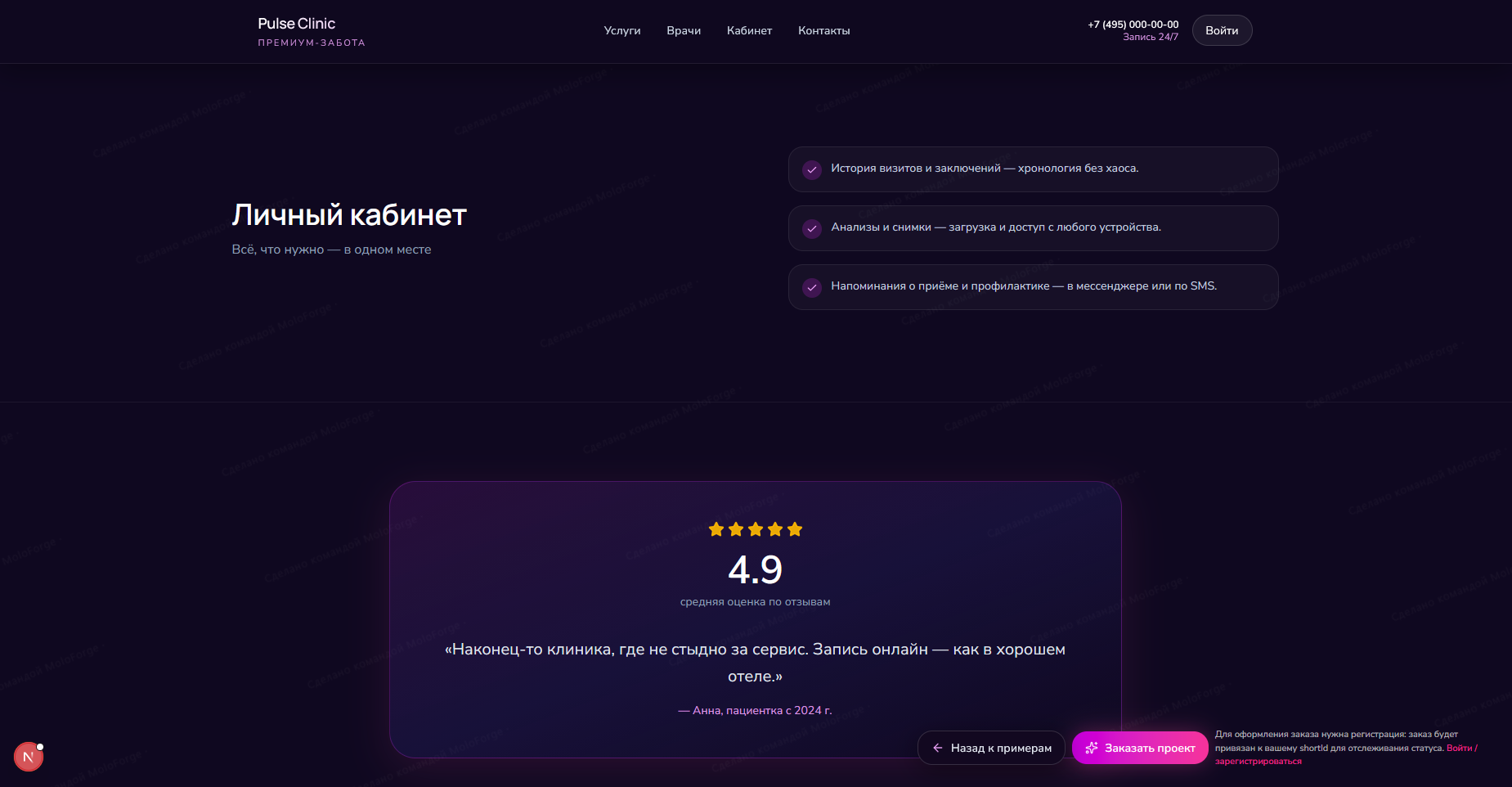 Клиника премиум-класса: онлайн-запись и личный кабинет пациента.